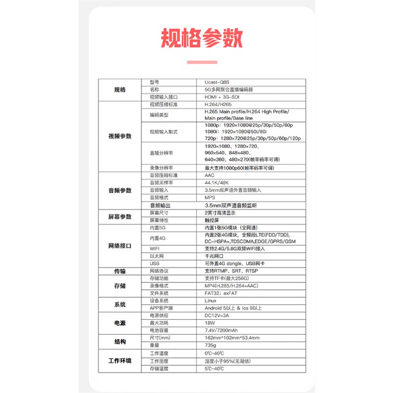UCAST Ucast Q8S 通用無線電通信設備 5G多網聚合直播編碼器 HDMI SDI高清視頻微贊微信多平臺推流設備